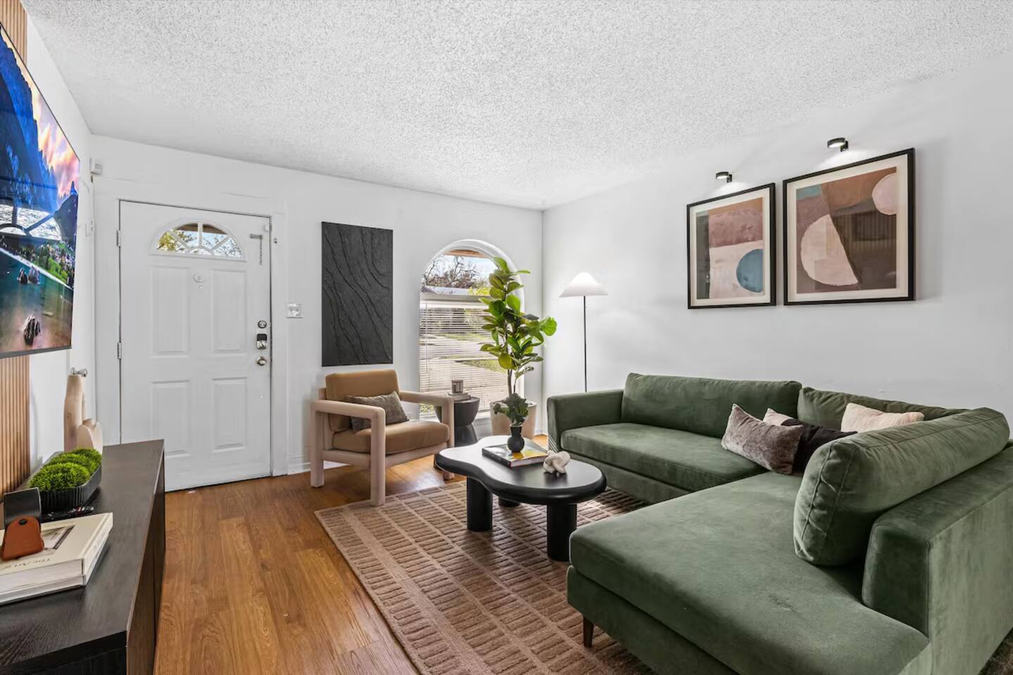 Serene South Austin Stay offers a spacious, well-balanced layout with contemporary furnishings, warm textures, and plenty of natural light. The home is designed to feel welcoming and uncluttered, with room to relax, gather, and recharge after exploring the city. Bedrooms: 1 King and 2 Queen bedrooms with smart TV and fireplace, closet space, clean and calming design Bathrooms: Two full bathrooms with modern fixtures and fresh towels Living Room: Large sectional sofa, coffee table, wall art, and TV, open layout with great natural light and a pool table. Kitchen & Dining: Fully equipped kitchen with cookware and essentials. Dining table for shared meals or remote work 📍 Location Highlights 🚗 10–15 minutes to Downtown Austin 🌮 Close to South Congress, St. Elmo, and local eateries 🌳 Near parks and green spaces 🛣 Easy access to major roads and highways